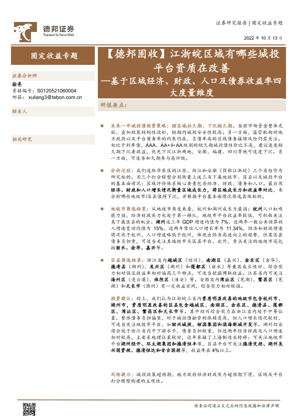 【德邦证券】【20221013】基于区域经济、财政、人口及债券收益率四大度量维度:江浙皖区域有哪些城投平台资质在改善-21页