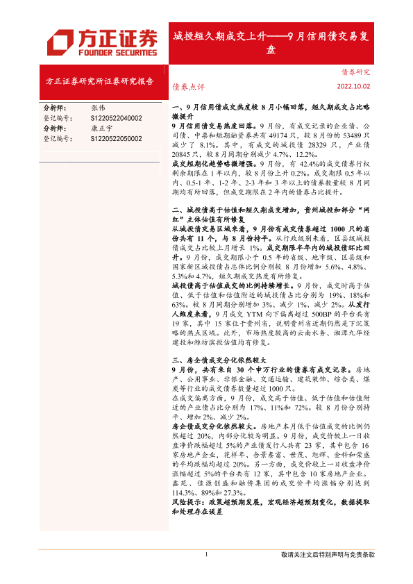 【方正证券】【20221002】9月信用债交易复盘:城投短久期成交上升-15页