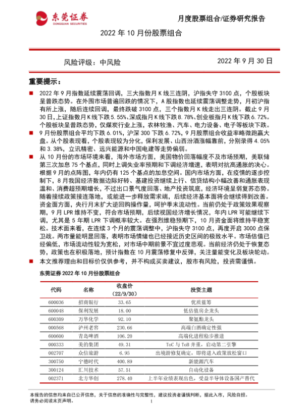 【东莞证券】【20220930】2022年10月份股票组合-15页