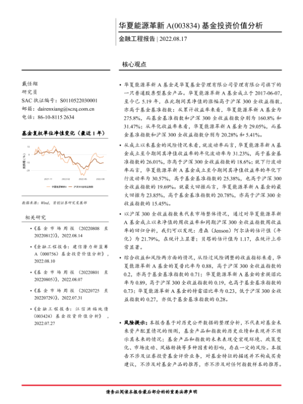 【首创证券】【20220817】金融工程报告:华夏能源革新A(003834)基金投资价值分析-16页