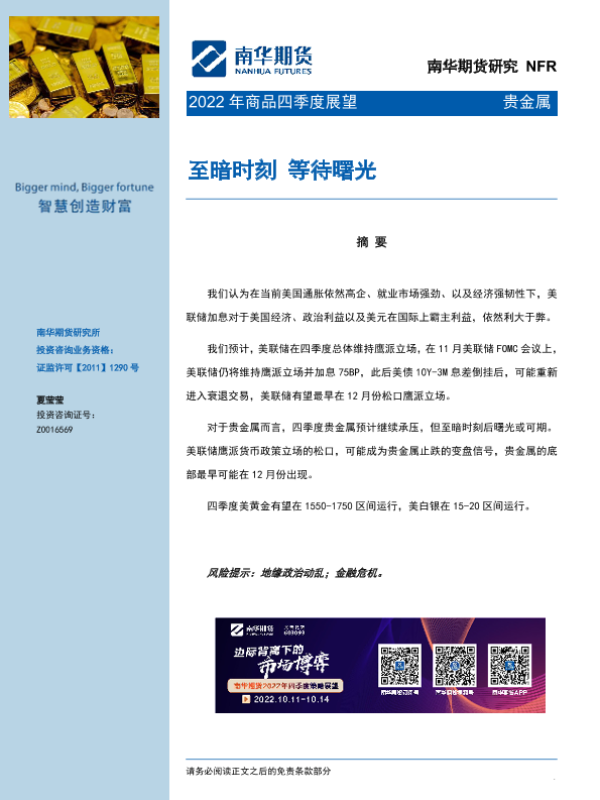 【南华期货】【20220930】2022年商品贵金属四季度展望:至暗时刻,等待曙光-28页