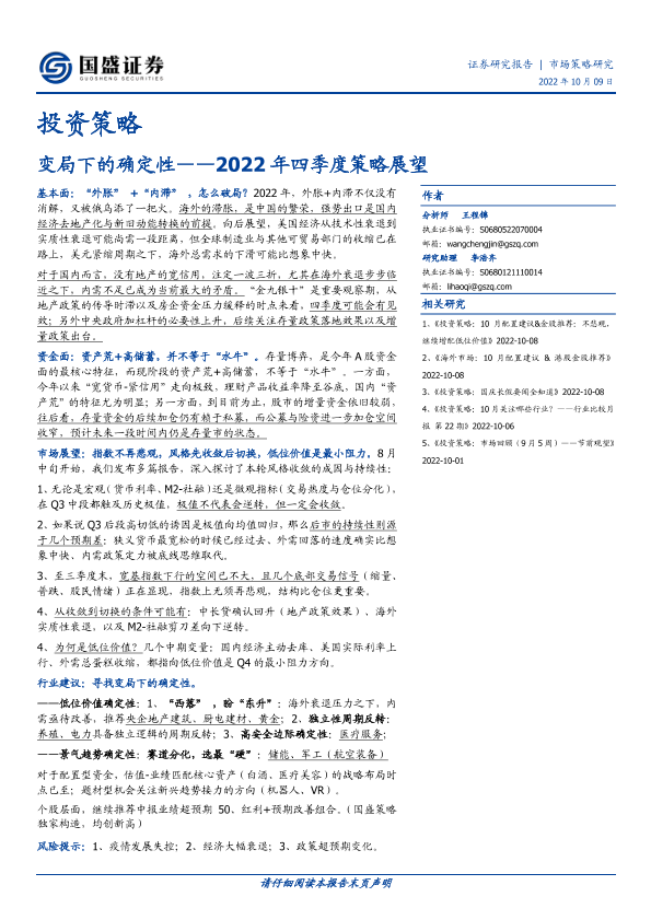 【国盛证券】【20221009】2022年四季度策略展望:变局下的确定性-36页