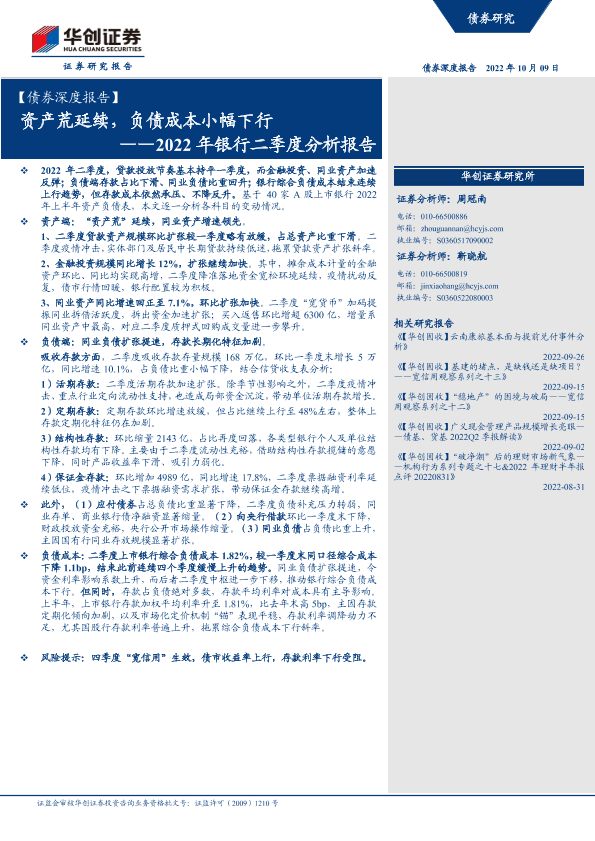 【华创证券】【20221009】2022年银行二季度分析报告:资产荒延续,负债成本小幅下行-24页