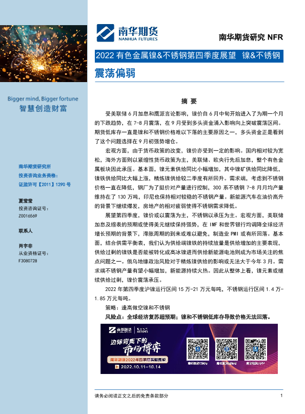 【南华期货】【20220930】2022有色金属镍&不锈钢第四季度展望:震荡偏弱-16页