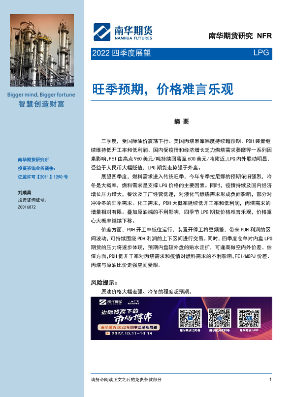 【南华期货】【20221001】2022LPG四季度展望:旺季预期,价格难言乐观-17页