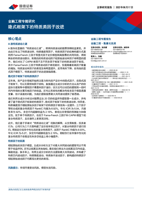 【国信证券】【20220817】金融工程专题研究:隐式框架下的特质类因子改进-23页