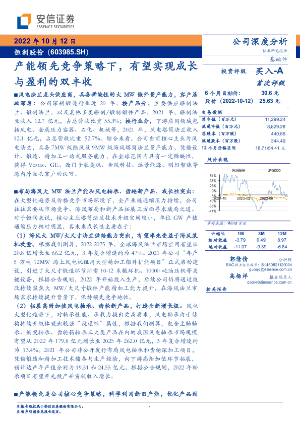 产能领先 大型化趋势 新产品拓展 海风布局 风电法兰