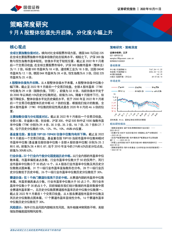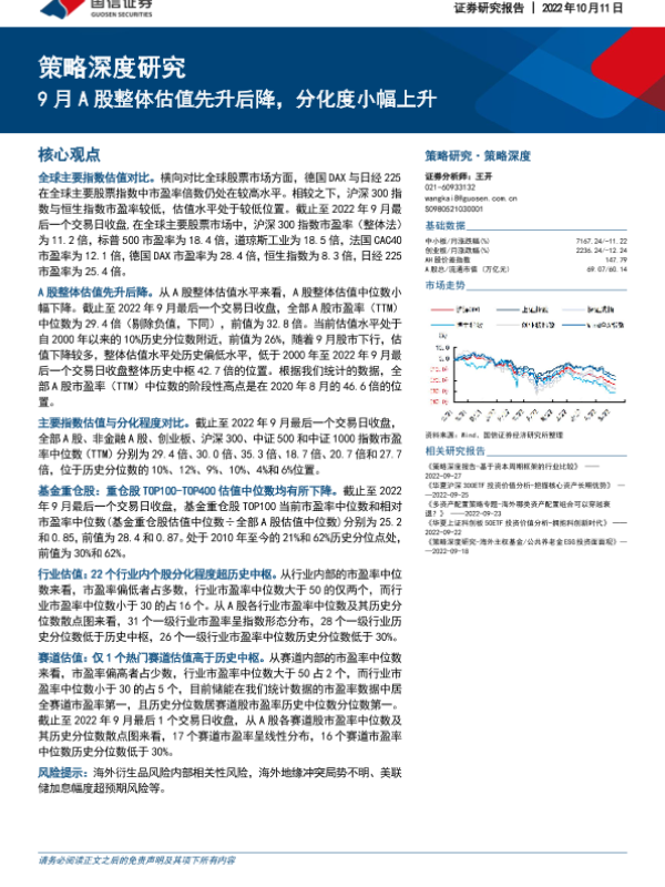 【国信证券】【20221011】策略深度研究:9月A股整体估值先升后降,分化度小幅上升-45页
