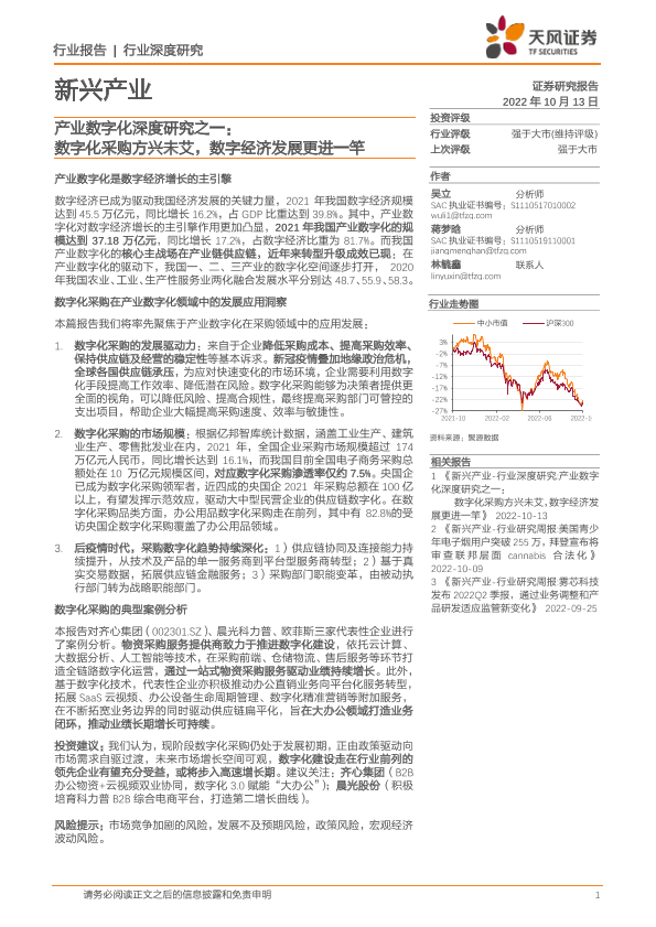 【天风证券】【20221014】产业数字化深度研究之一:数字化采购方兴未艾,数字经济发展更进一竿-30页