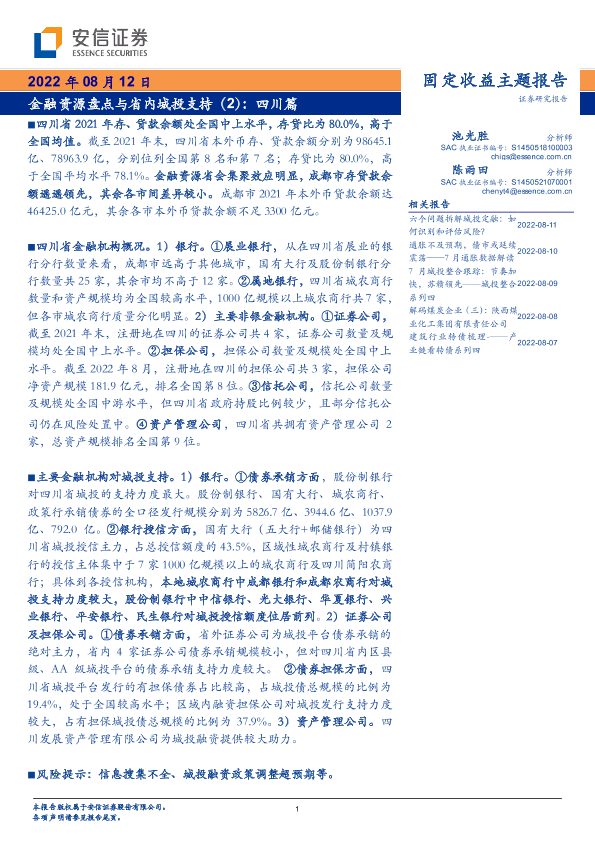 【安信证券】【20220812】金融资源盘点与省内城投支持(2):四川篇-20页