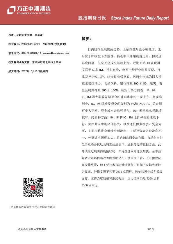 【方正中期期货】【20221013】股指期货日报-20221013-14页