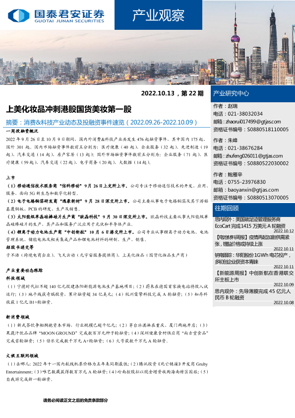【国泰君安证券】【20221013】产业观察第22期:上美化妆品冲刺港股国货美妆第一股-10页