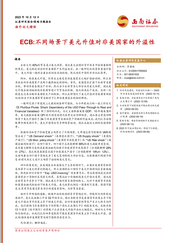 【西南证券】【20221012】ECB 不同场景下美元升值对非美国家的外溢性-13页