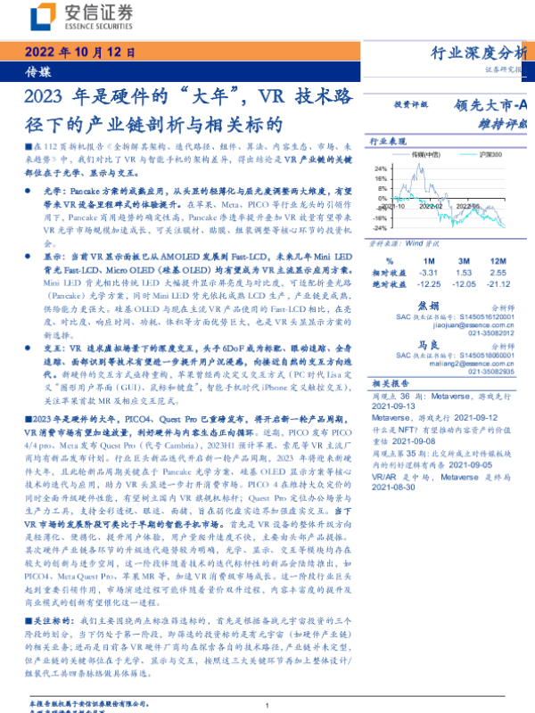 【安信证券】【20221012】传媒行业:2023年是硬件的“大年”,VR技术路径下的产业链剖析与相关标的-37页