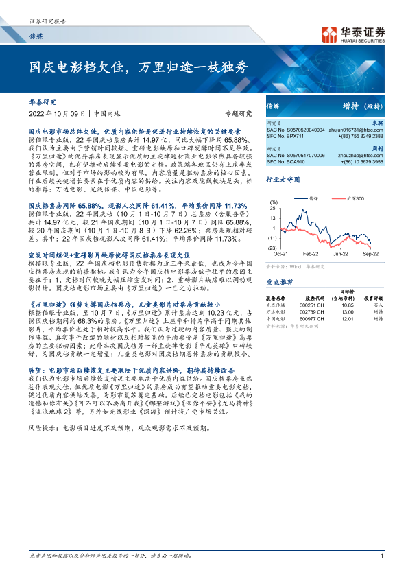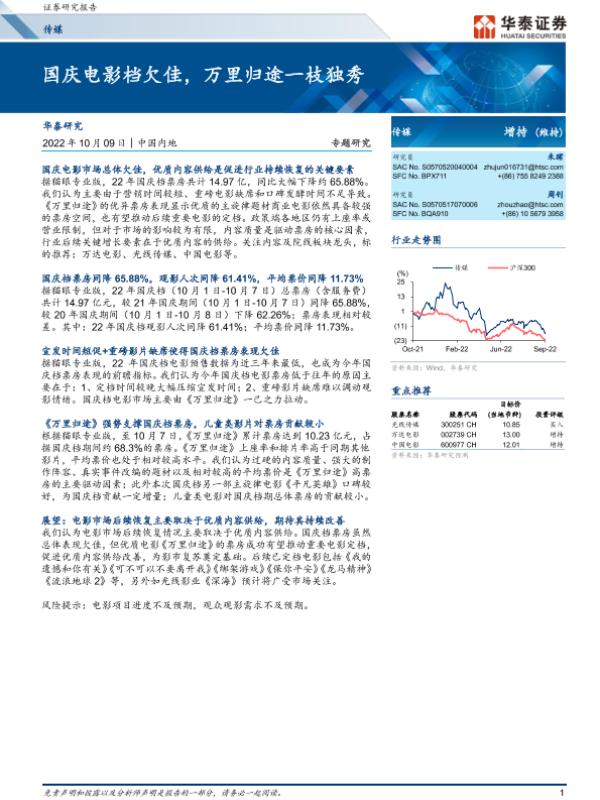 【华泰证券】【20221009】传媒行业专题研究: 国庆电影档欠佳,万里归途一枝独秀-16页