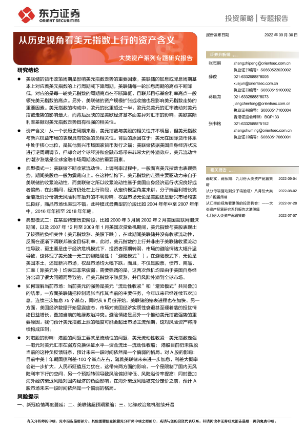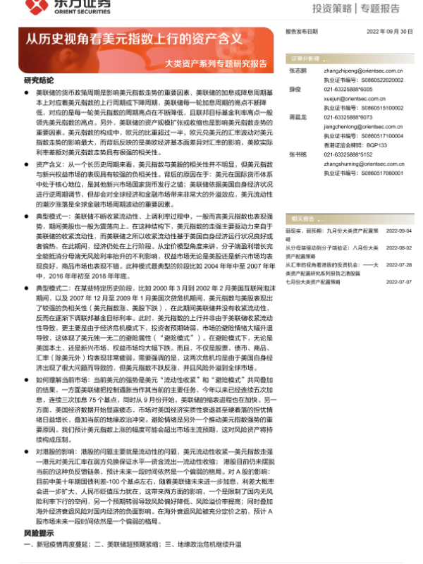 【东方证券】【20220930】大类资产系列专题研究报告:从历史视角看美元指数上行的资产含义-15页