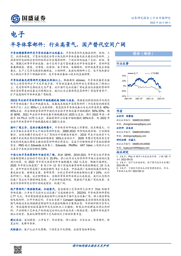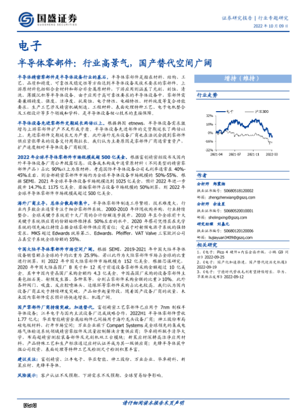【国盛证券】【20221009】电子行业半导体零部件:行业高景气,国产替代空间广阔-33页