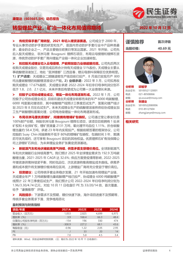 【民生证券】【20221012】动态报告:转型锂盐产业,矿冶一体化布局值得期待-27页