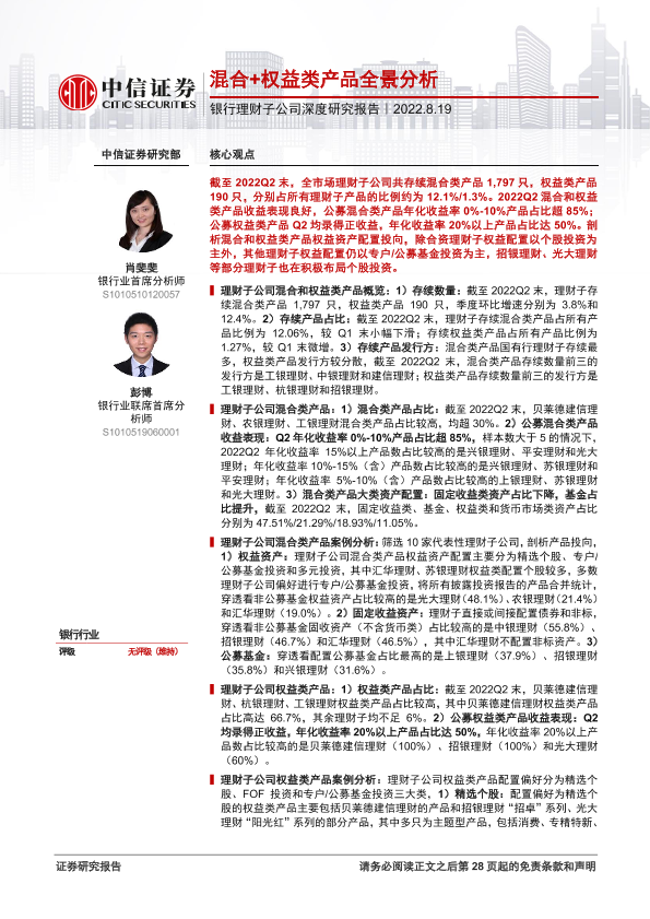 【中信证券】【20220819】银行业理财子公司深度研究报告:混合+权益类产品全景分析-29页