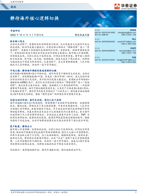 【华泰证券】【20221011】固定收益月报:静待海外核心逻辑切换-29页