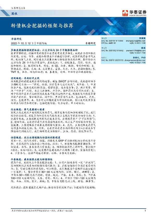 【华泰证券】【20221012】固收专题研究:转债机会挖掘的框架与推荐-28页