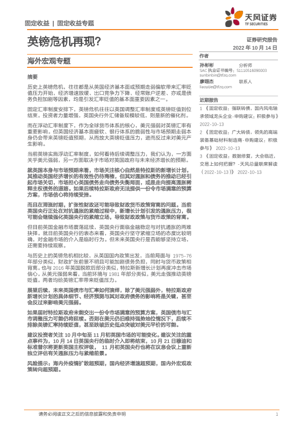 【天风证券】【20221014】海外宏观专题:英镑危机再现?-17页