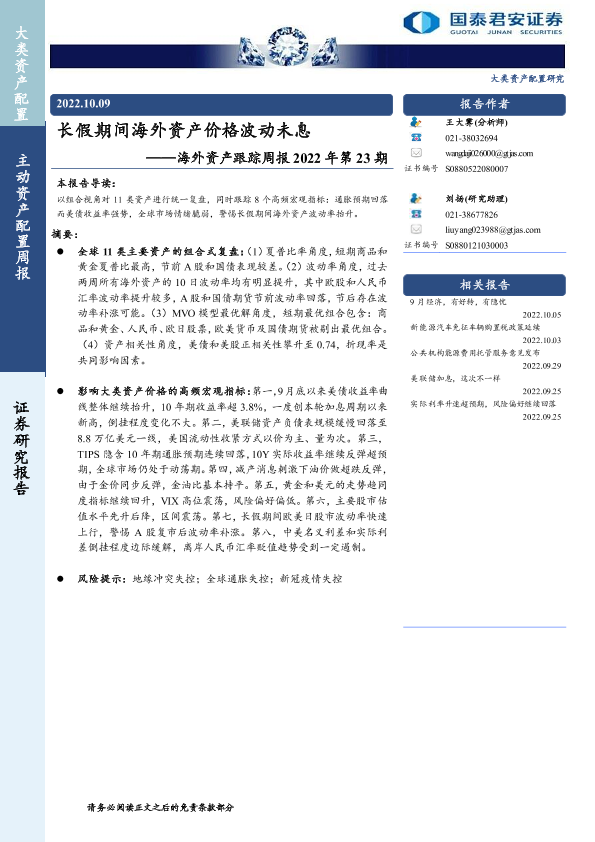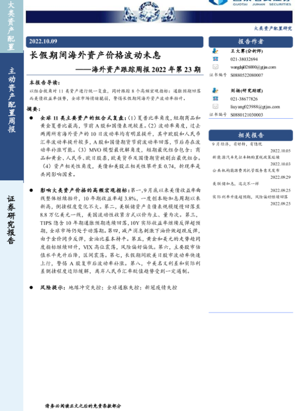 【国泰君安证券】【20221009】海外资产跟踪周报2022年第23期:长假期间海外资产价格波动未息-10页