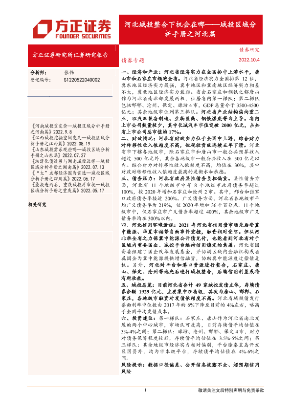 【方正证券】【20221004】河北城投整合下机会在哪:城投区域分析手册之河北篇-27页