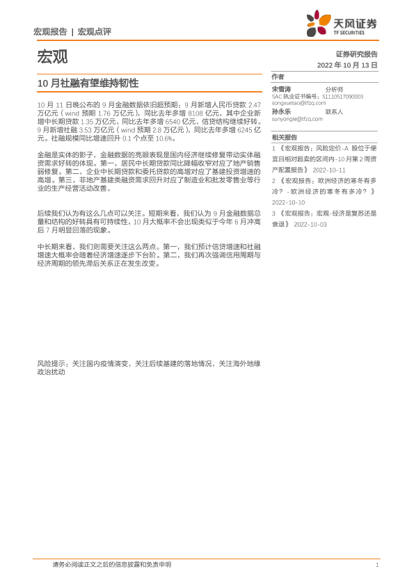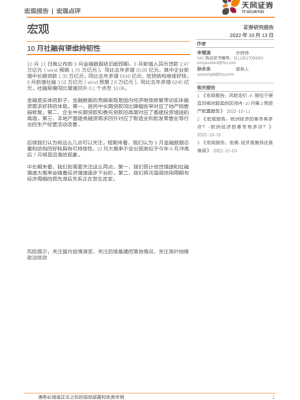 【天风证券】【20221013】10月社融有望维持韧性-12页