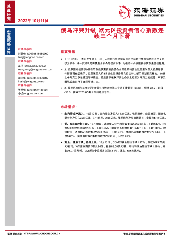 【东海证券】【20221011】宏观策略日报:俄乌冲突升级,欧元区投资者信心指数连续三个月下滑-10页