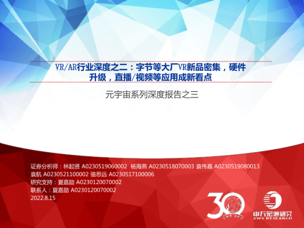 【申万宏源】【20220815】页元宇宙行业系列深度报告之三:VRAR行业深度之二,字节等大厂VR新品密集,硬件升级,直播视频等应用成新看点-55页