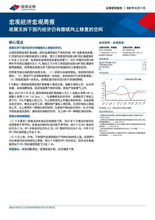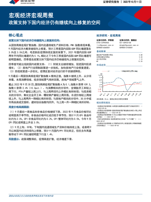 【国信证券】【20221011】宏观经济宏观周报:政策支持下国内经济仍有继续向上修复的空间-17页