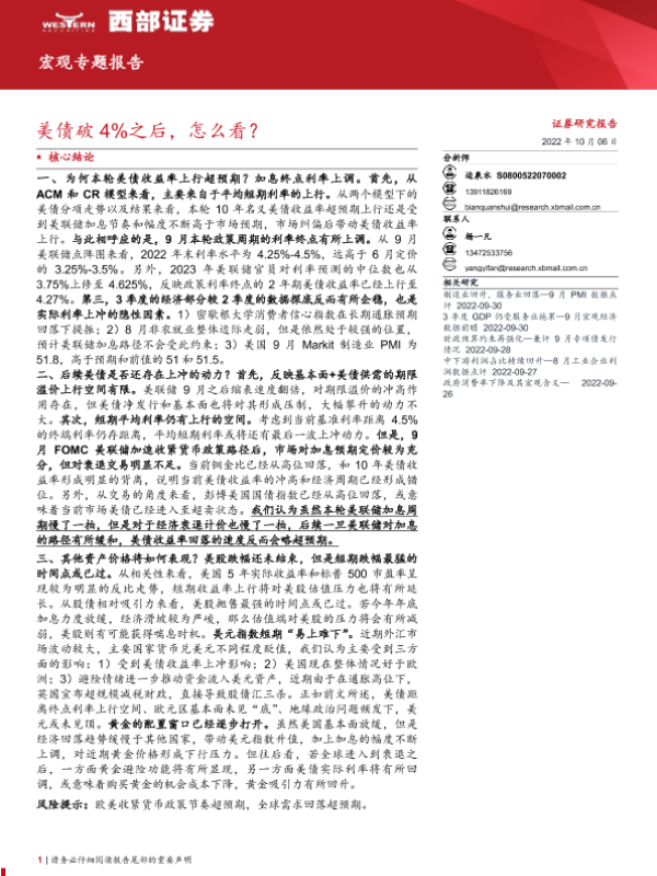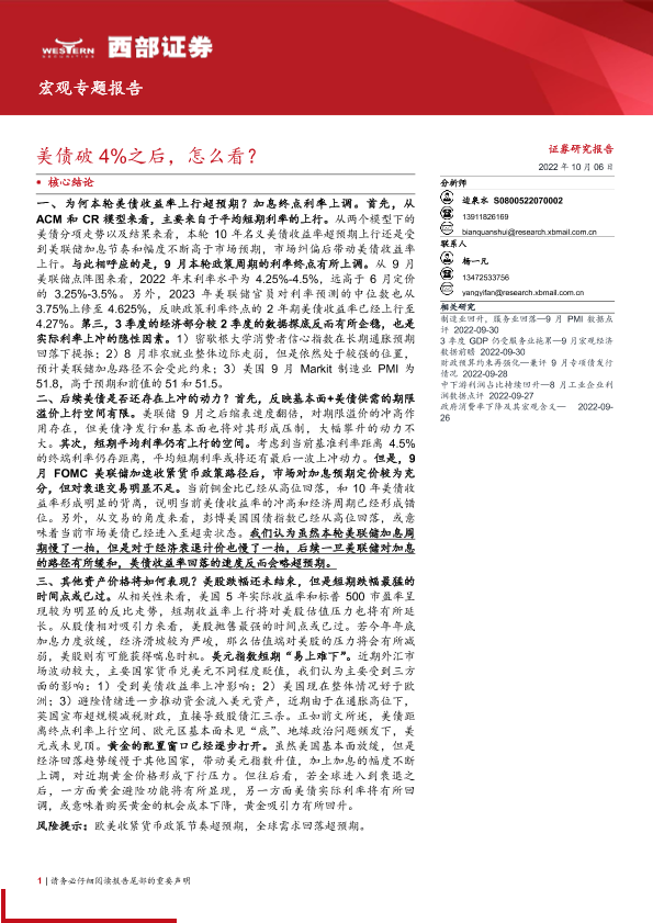 【西部证券】【20221006】宏观专题报告:美债破4%之后,怎么看?-15页