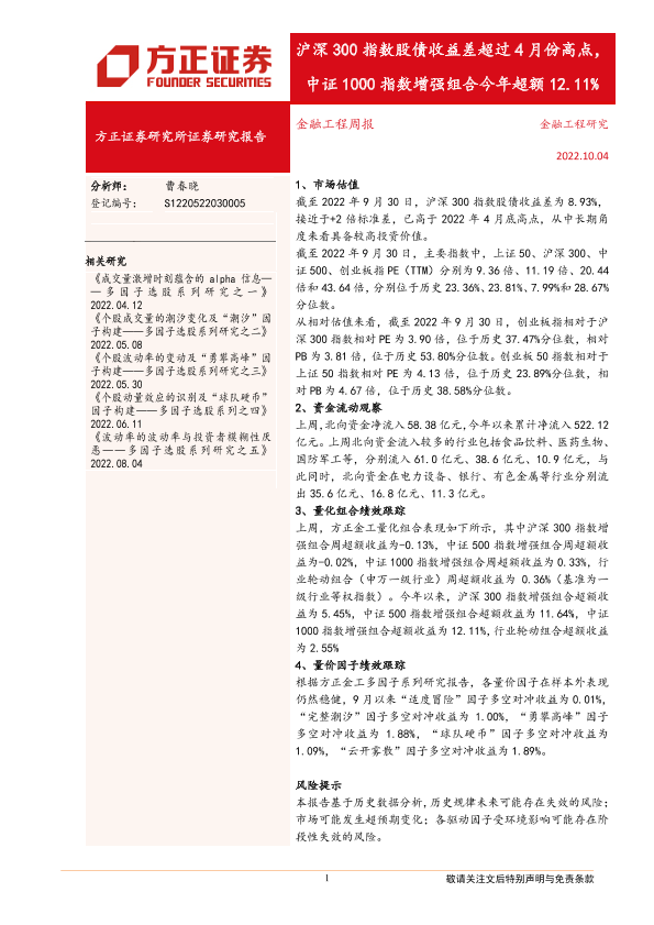 【方正证券】【20221004】沪深300指数股债收益差超过4月份高点,中证1000指数增强组合今年超额12.11%-17页