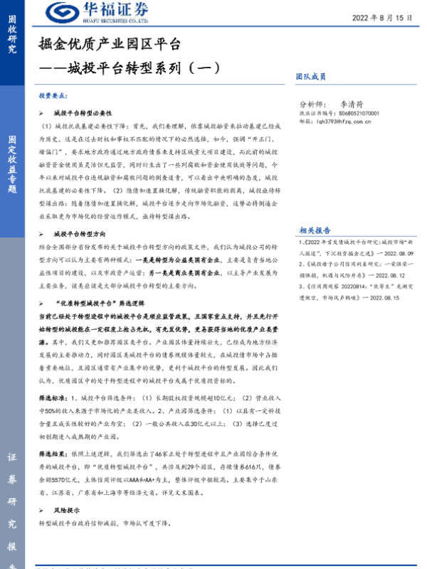 【华福证券】【20220815】掘金优质产业园区平台——城投平台转型系列(一)-16页