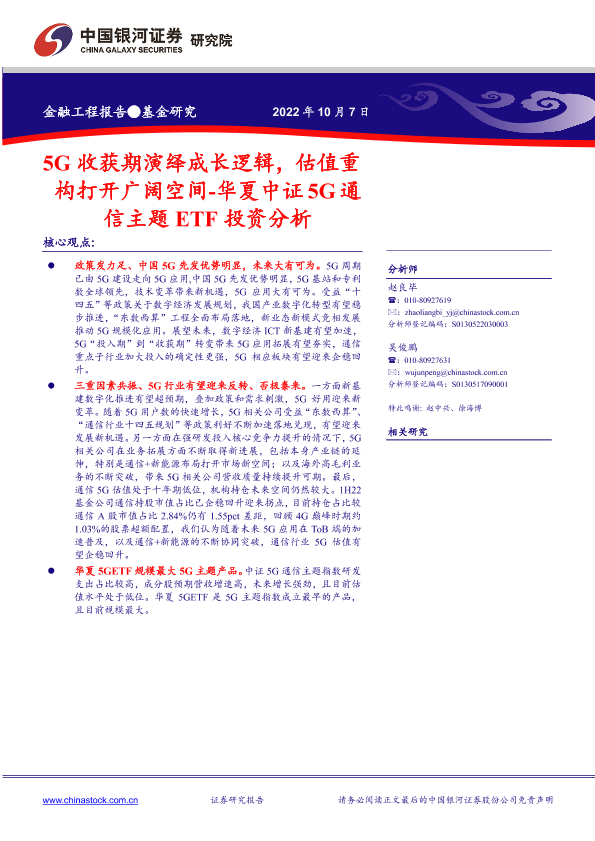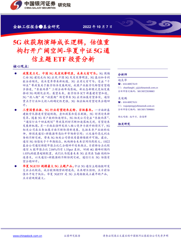 【银河证券】【20221007】华夏中证5G通信主题ETF投资分析:5G收获期演绎成长逻辑,估值重构打开广阔空间-24页