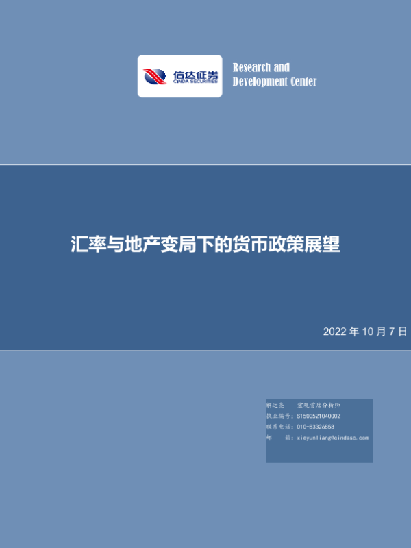 【信达证券】【20221007】汇率与地产变局下的货币政策展望-26页