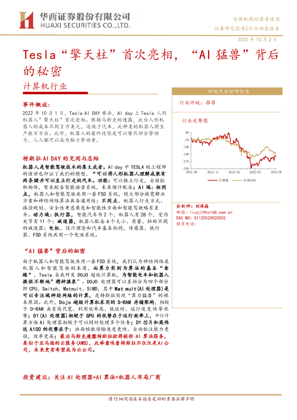 【华西证券】【20221002】计算机行业:Tesla“擎天柱”首次亮相,“AI猛兽”背后的秘密-16页