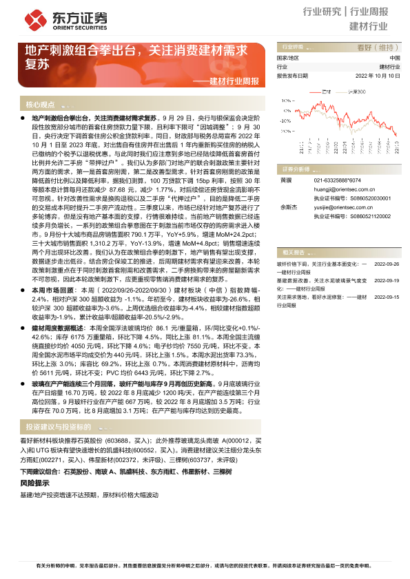 【东方证券】【20221010】建材行业周报:地产刺激组合拳出台,关注消费建材需求复苏-21页