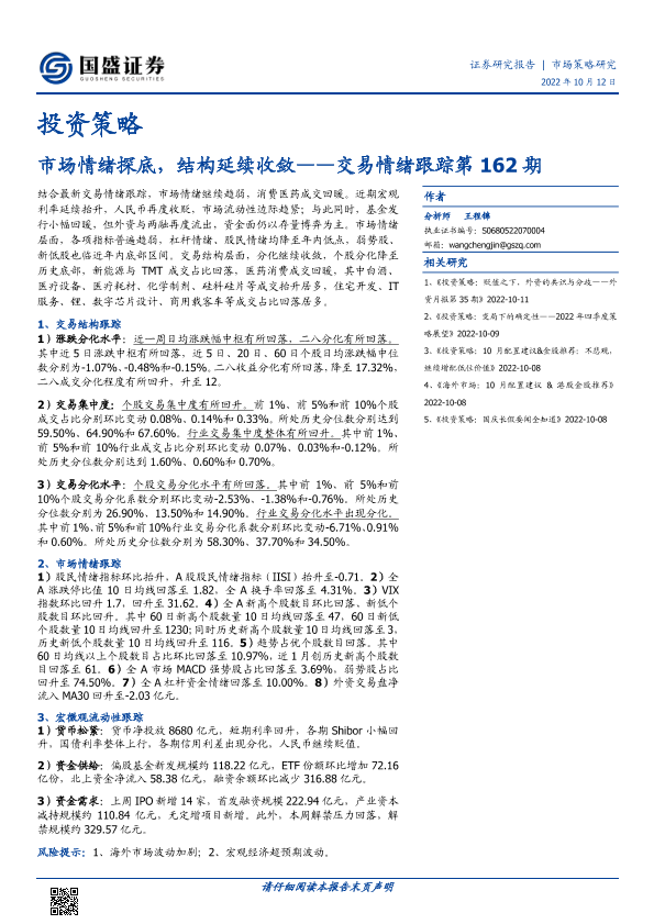 【国盛证券】【20221012】交易情绪跟踪第162期:市场情绪探底,结构延续收敛-16页