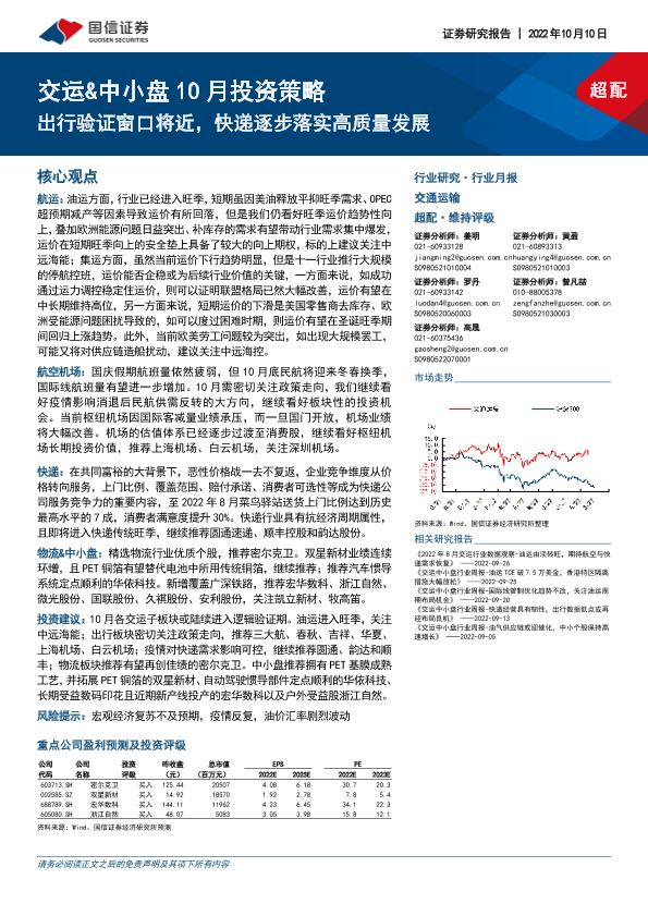 【国信证券】【20221010】交运行业&中小盘10月投资策略:出行验证窗口将近,快递逐步落实高质量发展-26页
