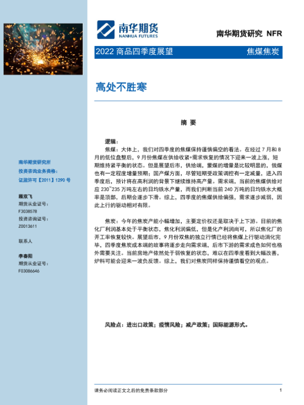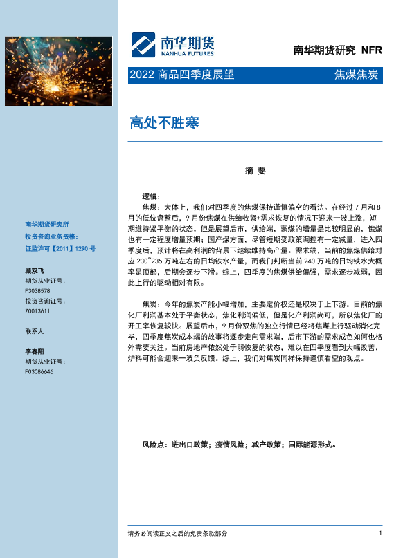 【南华期货】【20221014】焦煤焦炭2022商品四季度展望:高处不胜寒-23页
