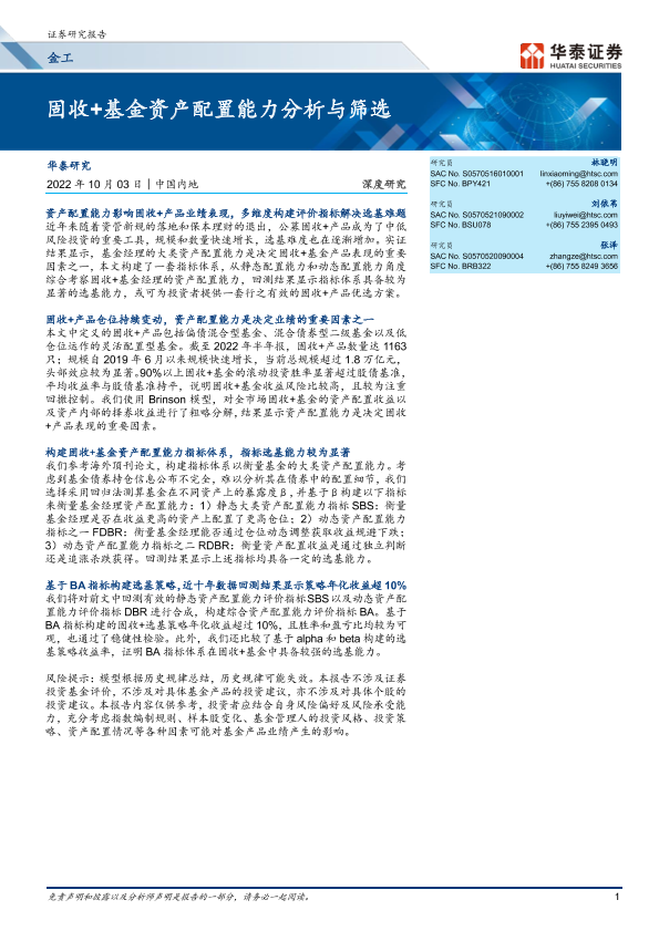 【华泰证券】【20221003】金工深度研究:固收+基金资产配置能力分析与筛选-29页