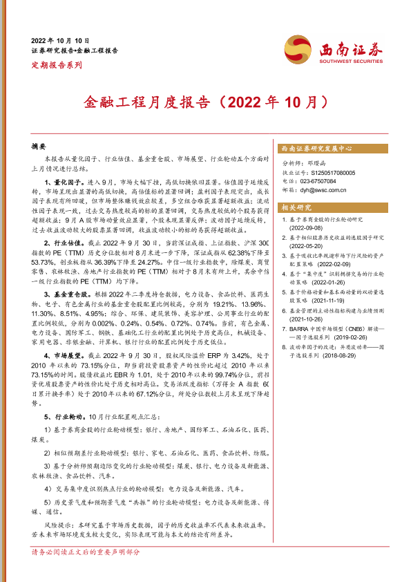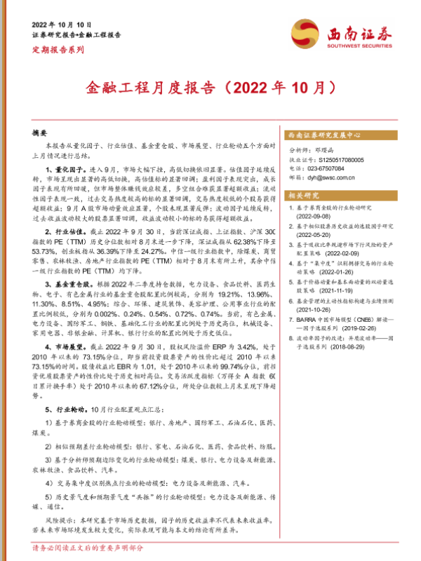 【西南证券】【20221010】金融工程月度报告(2022年10月)-21页
