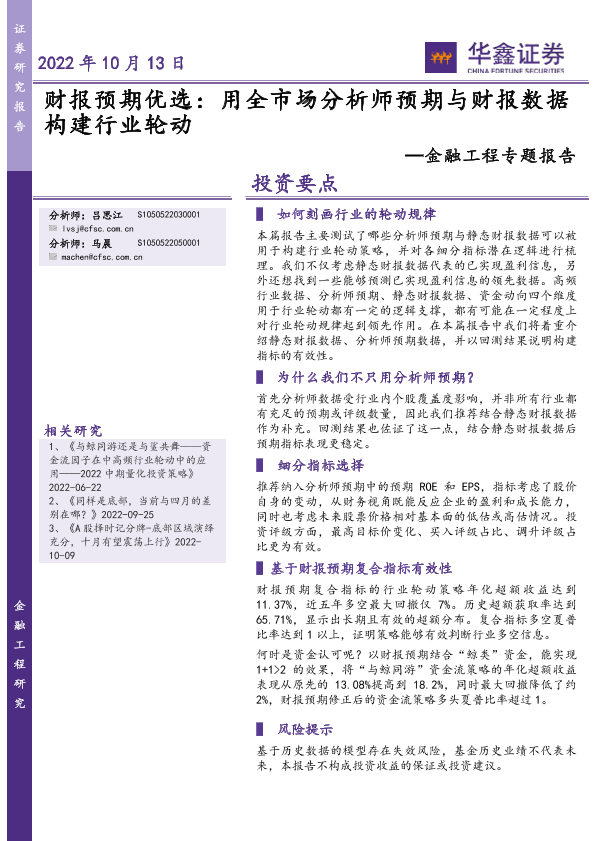 【华鑫证券】【20221013】财报预期优选:用全市场分析师预期与财报数据构建行业轮动-22页