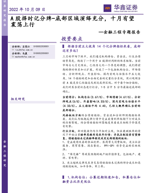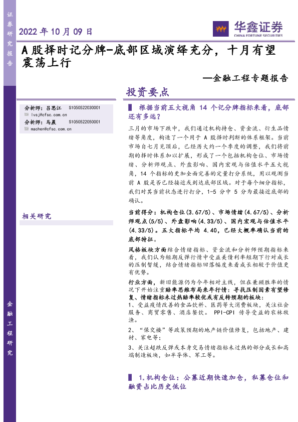 【华鑫证券】【20221009】金融工程专题报告:A股择时记分牌,底部区域演绎充分,十月有望震荡上行-24页