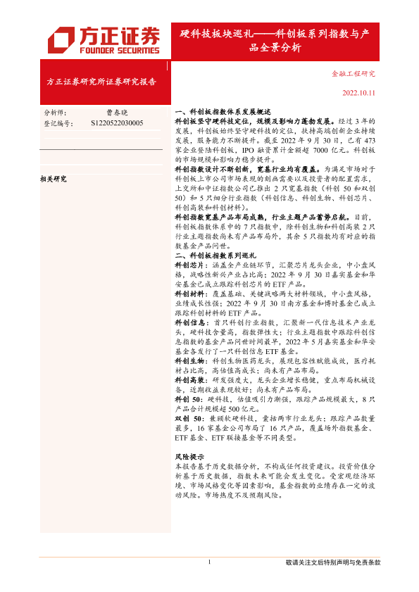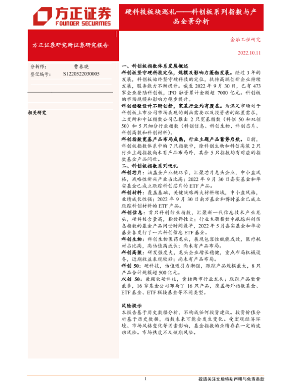 【方正证券】【20221011】科创板系列指数与产品全景分析:硬科技板块巡礼-30页