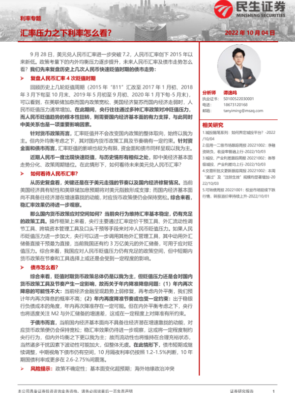 【民生证券】【20221004】汇率压力之下利率怎么看?-24页