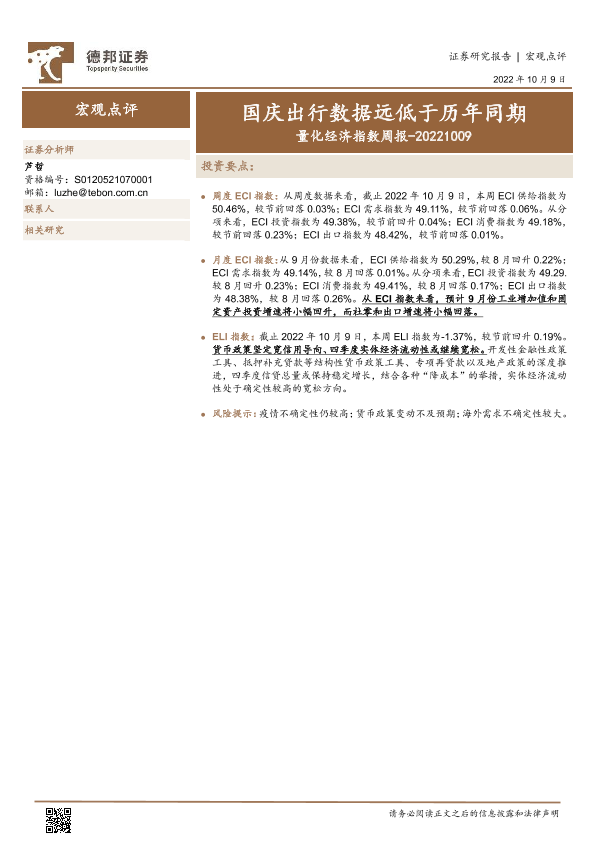 ECI指数 ELI指数 国庆出行 经济指数 货币政策