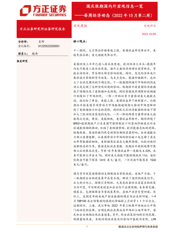 【方正证券】【20221009】每周经济动态(2022年10月第二周):国庆假期国内外宏观信息一览-17页